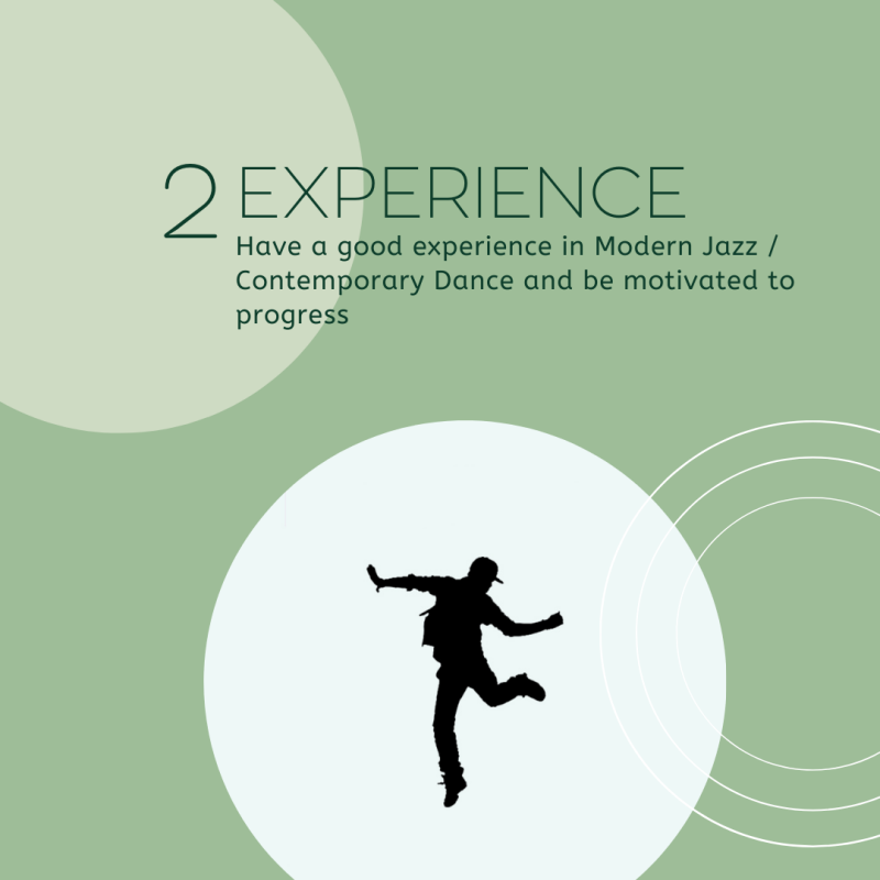 - Have a good experience in Modern Jazz / Contemporary Dance